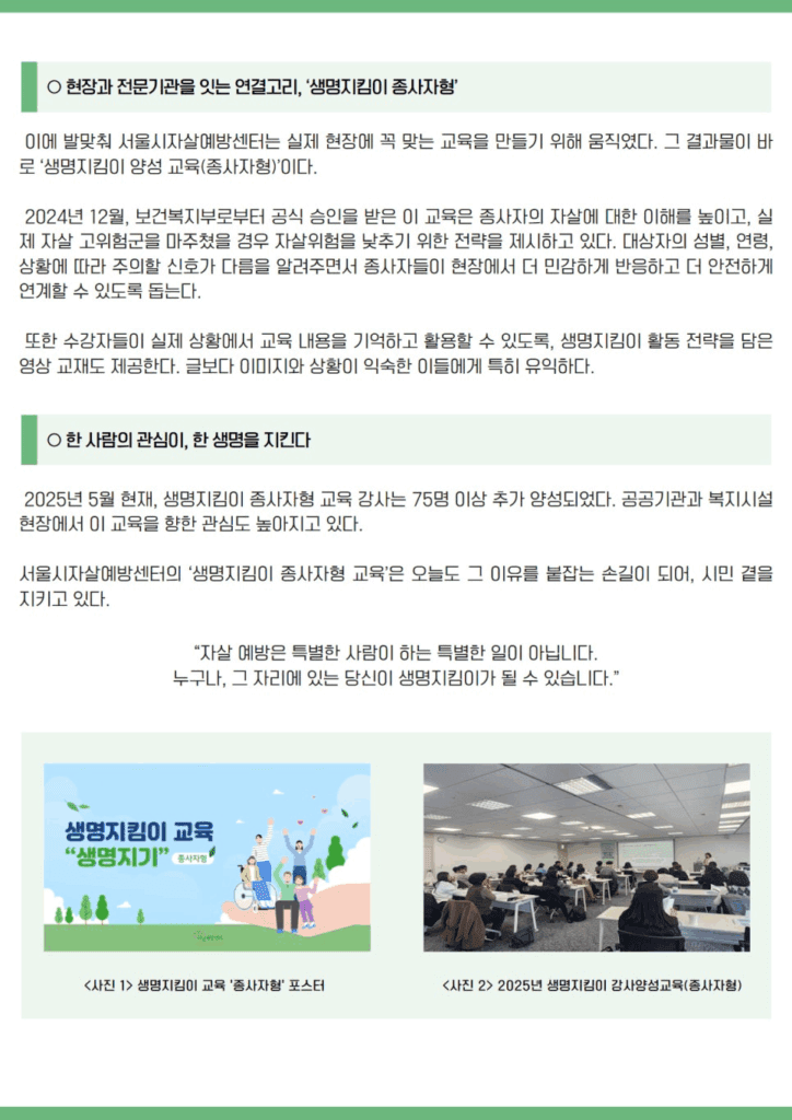 [기획기사] 생명지킴이 종사자형 교육 개발