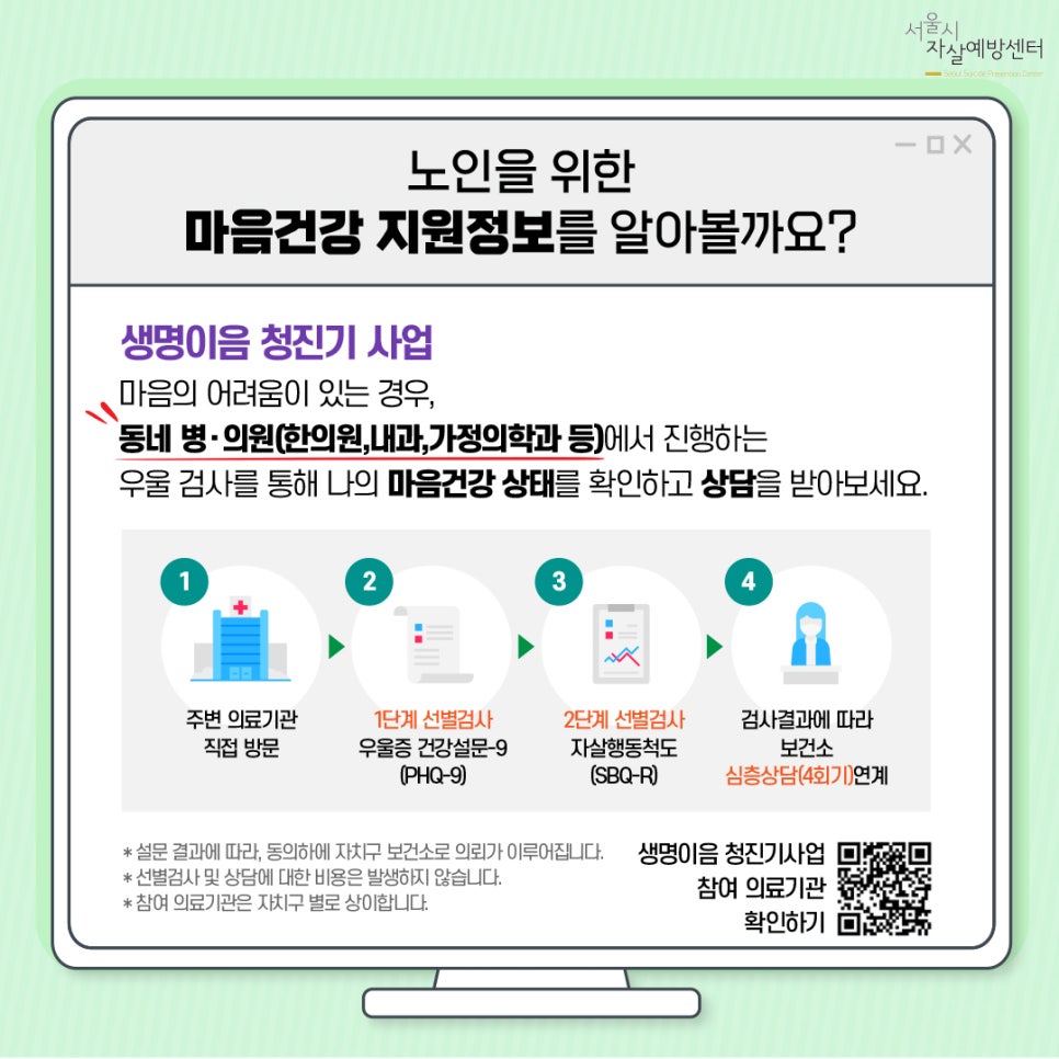 ✔ 기업, 기관 등에서 활용하고자 하는 경우에는 서울시자살예방센터 이메일(maum1080@seoulspc.or.kr)로 문의바랍니다.