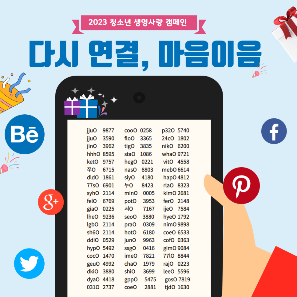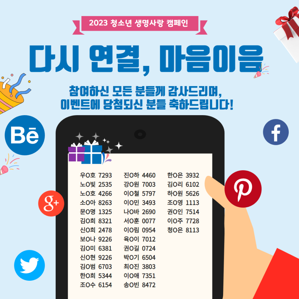 2023 청소년 생명사랑 캠페인 「다시 연결, 마음이음」에 많은 관심을 보여주셔서 감사 드립니다.