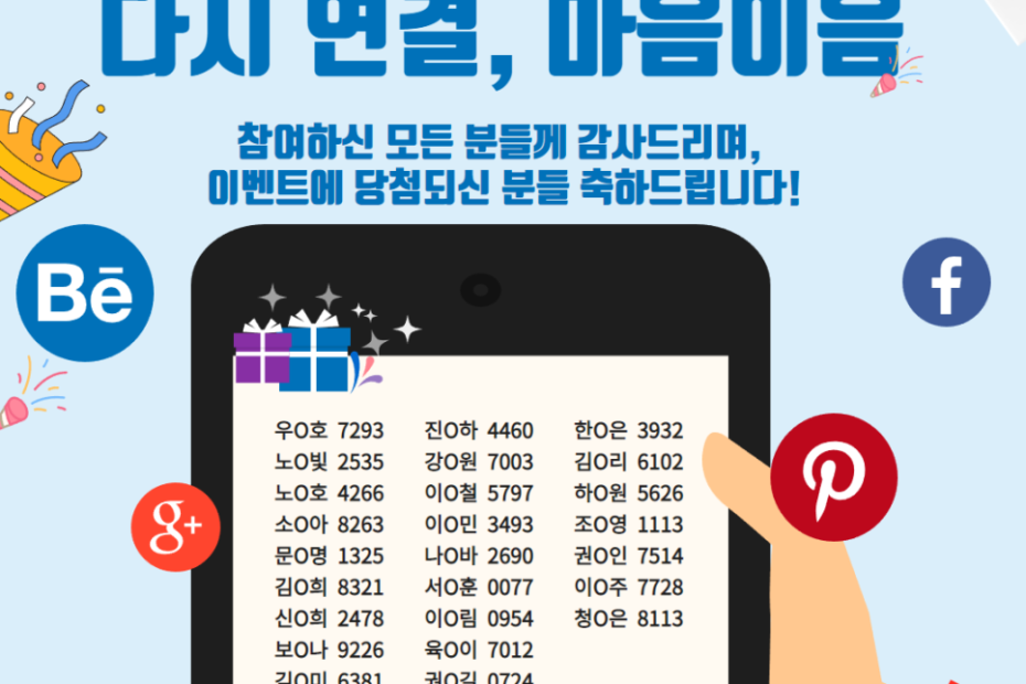 당첨자 확인을 위하여 성함 및 계정과 연락처 뒷 4자리로 공개 됩니다.