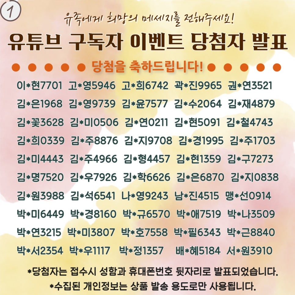 그 중 100명의 구독자분이 당첨되셨습니다. 축하드립니다!!
