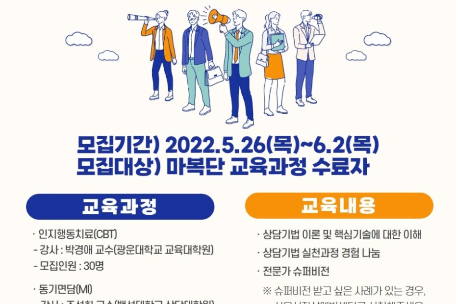 슈퍼비전 받고 싶은 사례를 통해, 나의 실천과정을 점검해봄으로써 전문성과 역량을 강화하는 성장의 시간이 되시길 바랍니다.