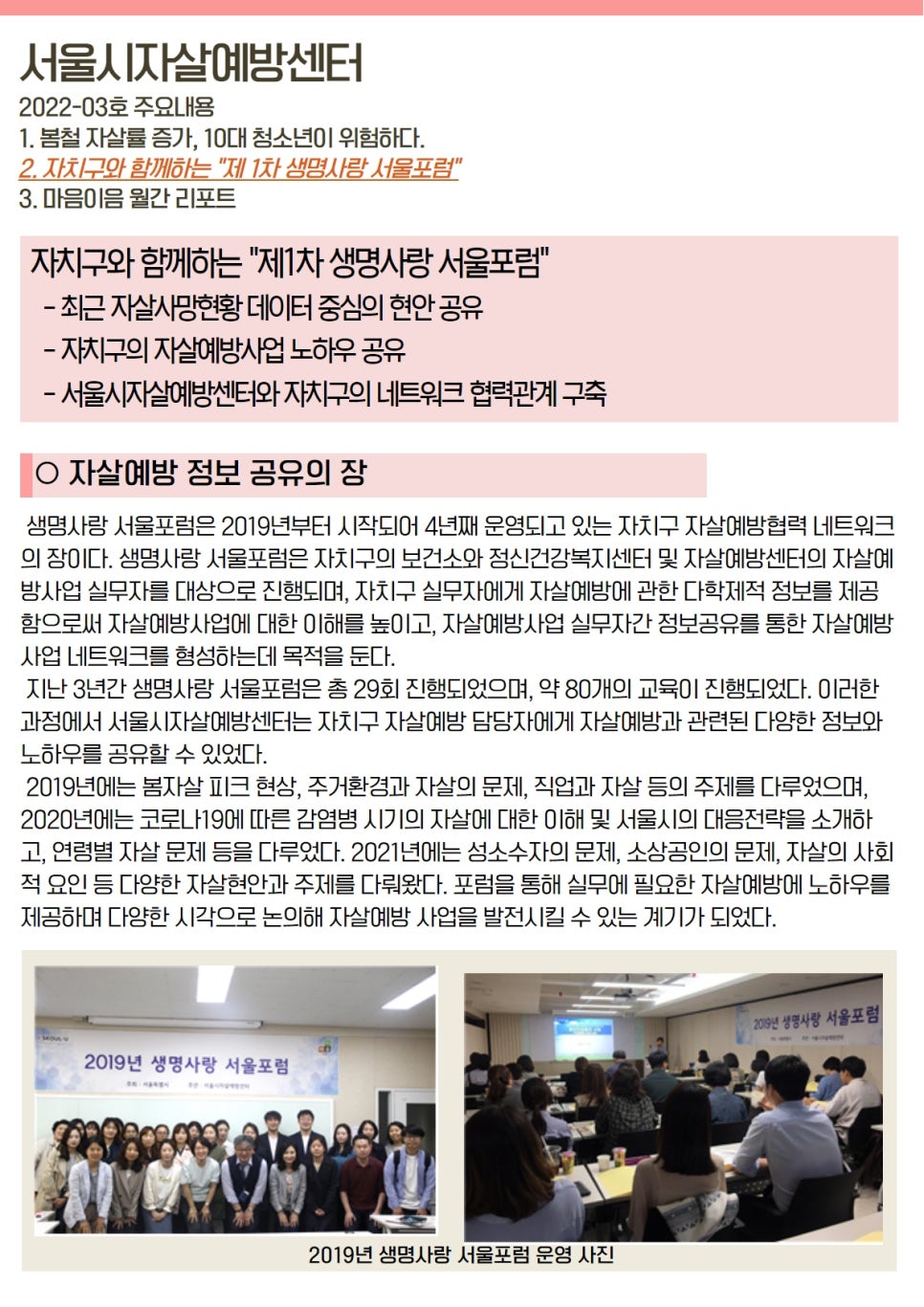 2022년 서울시자살예방센터 소식지 3호를 보내드립니다.