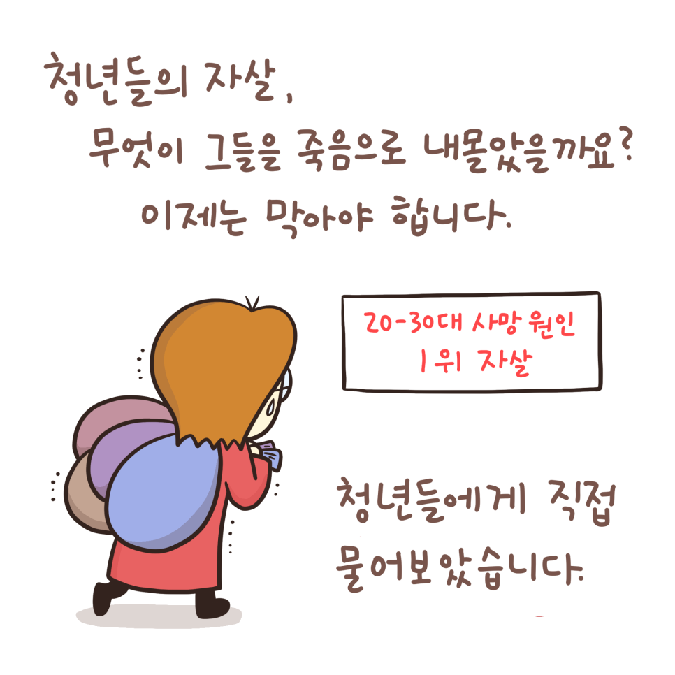이번 웹툰 시리즈는 청년 자살예방을 위한 정보 제공과 인식 개선을 목적으로 제작되었습니다.