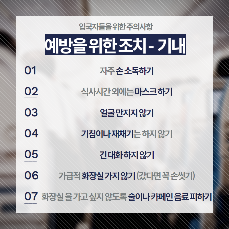 외국에서 들어오는 입국자들이 주의해야 할 예방수칙