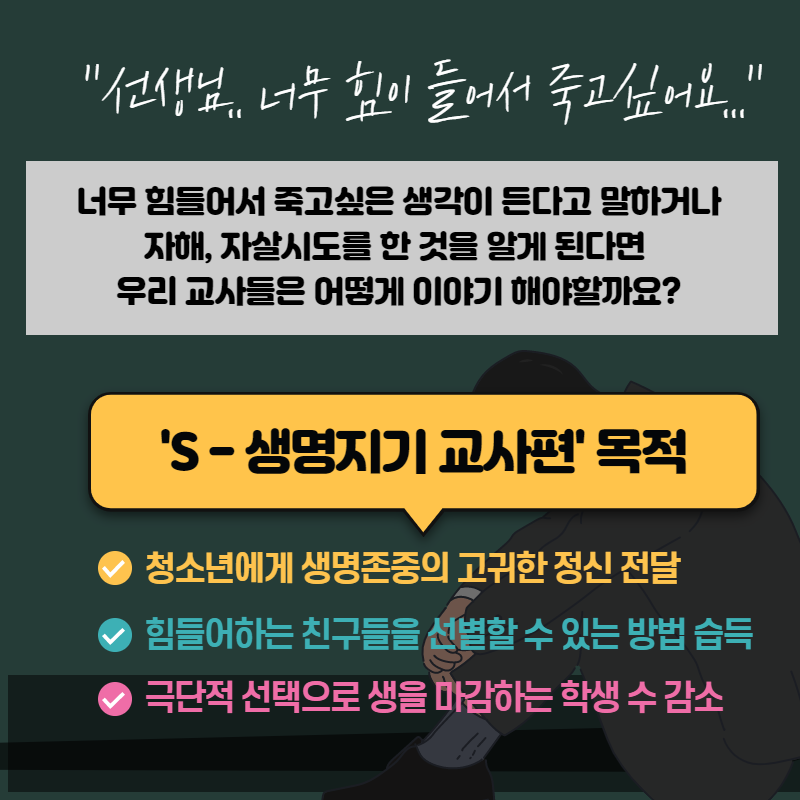 ‘S-생명지기 기초편’, ‘S-생명지기 교사편’은 자살예방에 관심 있는 서울시민, 교사 등