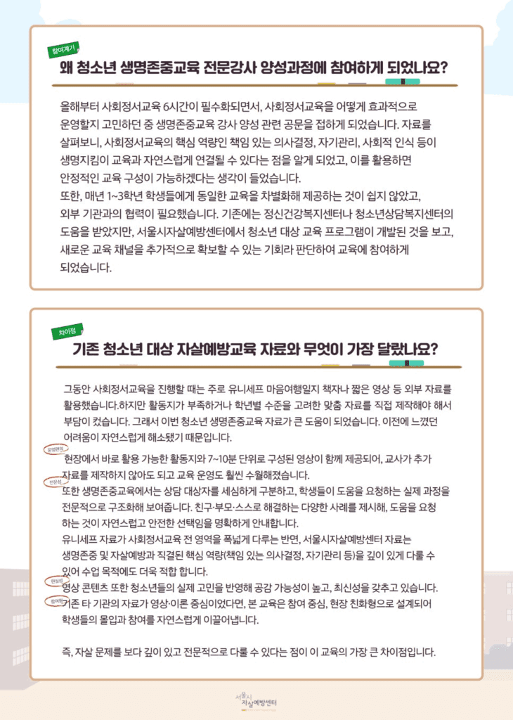 [자살예방 관계자 인터뷰4] 청소년 생명존중 강사양성 과정 수료자