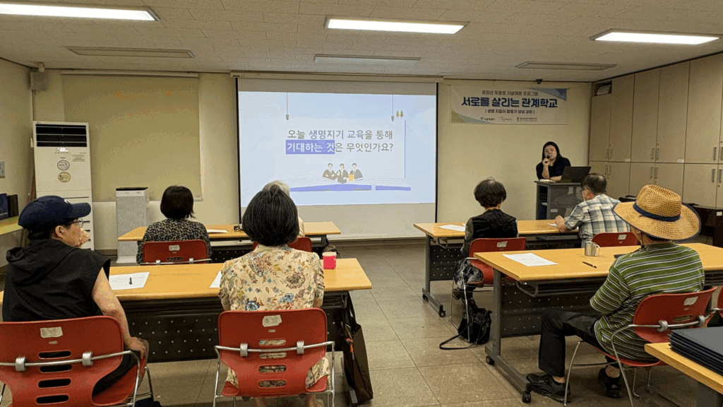 중장년 관계 맺기 프로그램 ‘서로를 살리는 관계학교’ 에서도 생명지킴이 양성은 이어졌습니다.