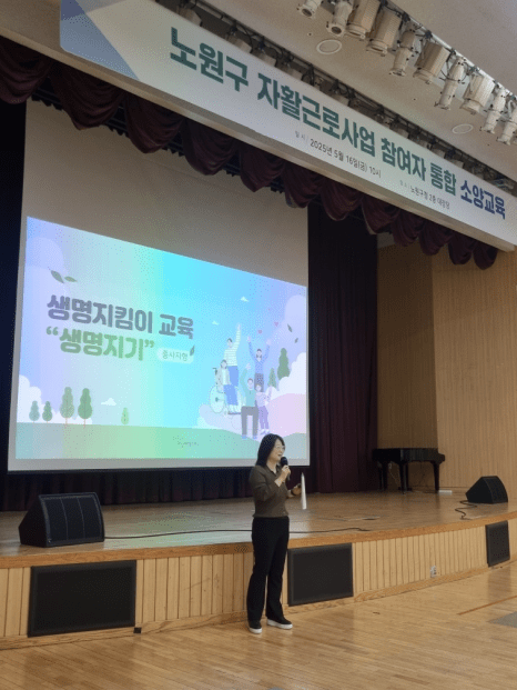 구청 공무원, 청년센터, 자활센터 종사자 등 대인서비스 종사자 대상으로 생명지킴이 교육을 진행하였습니다.