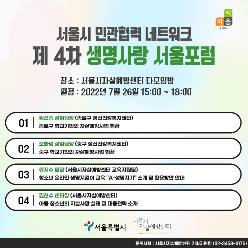 – 문 의 : 서울시자살예방센터 기획지원팀(02-3458-1075)