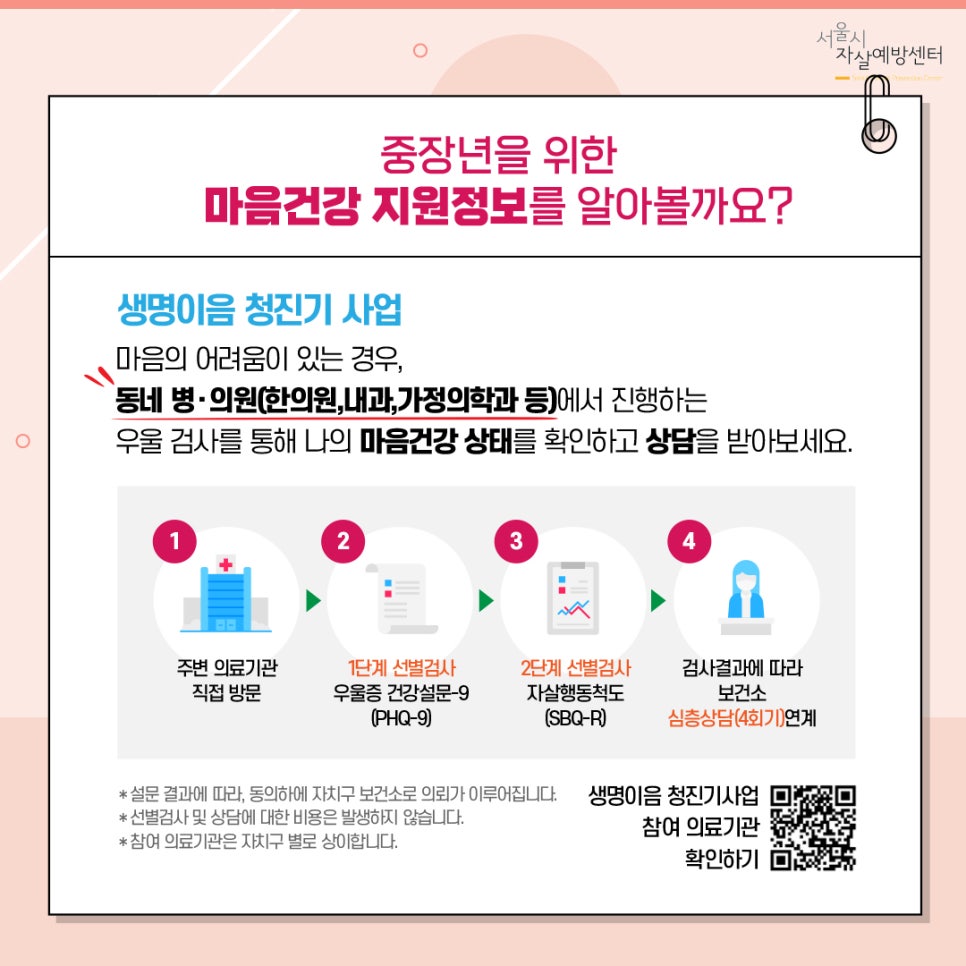 ✔ 기업, 기관 등에서 활용하고자 하는 경우에는 서울시자살예방센터 이메일(maum1080@seoulspc.or.kr)로 문의바랍니다.