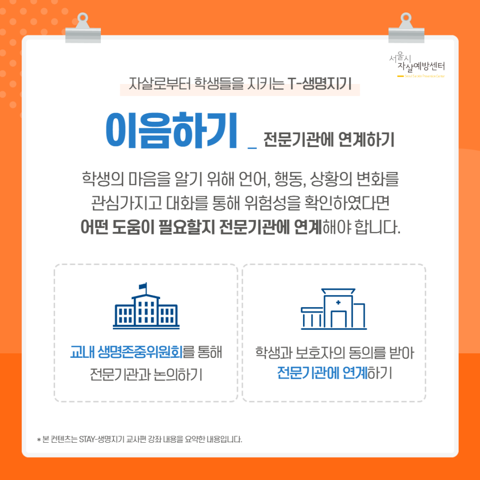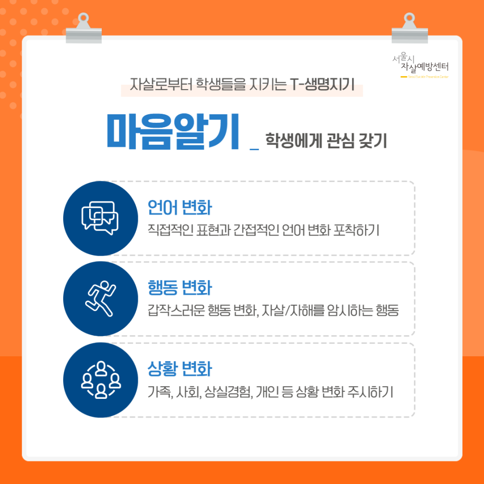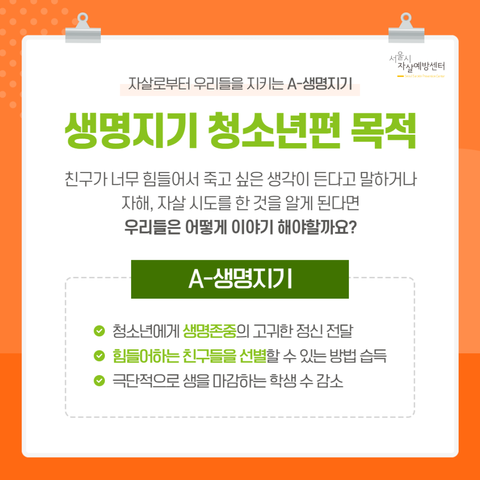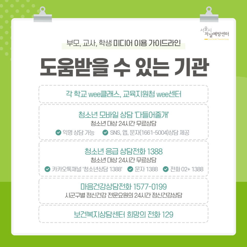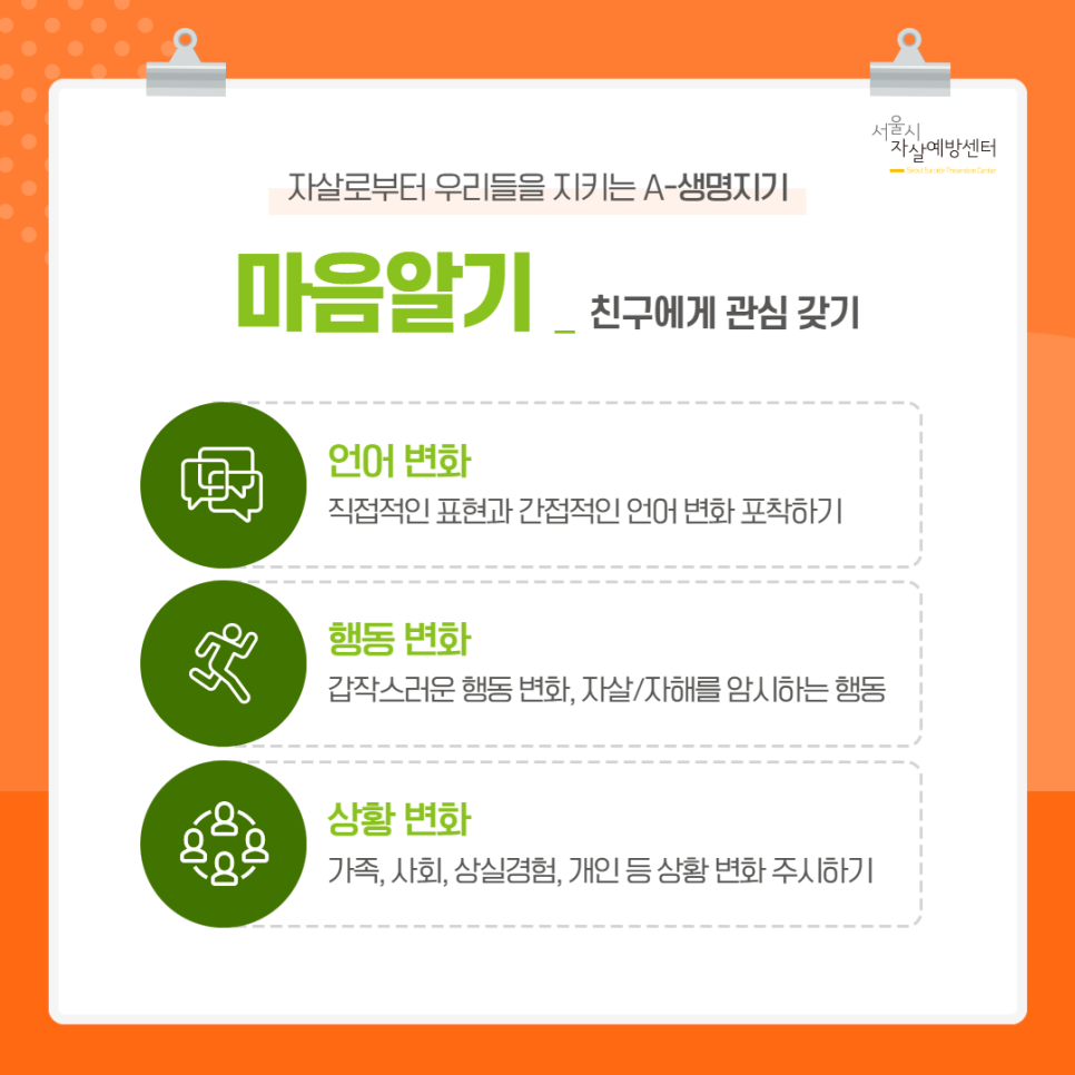 ✔ 기업, 기관 등에서 활용하고자 하는 경우에는 서울시자살예방센터 이메일(maum1080@seoulspc.or.kr)로 문의바랍니다.