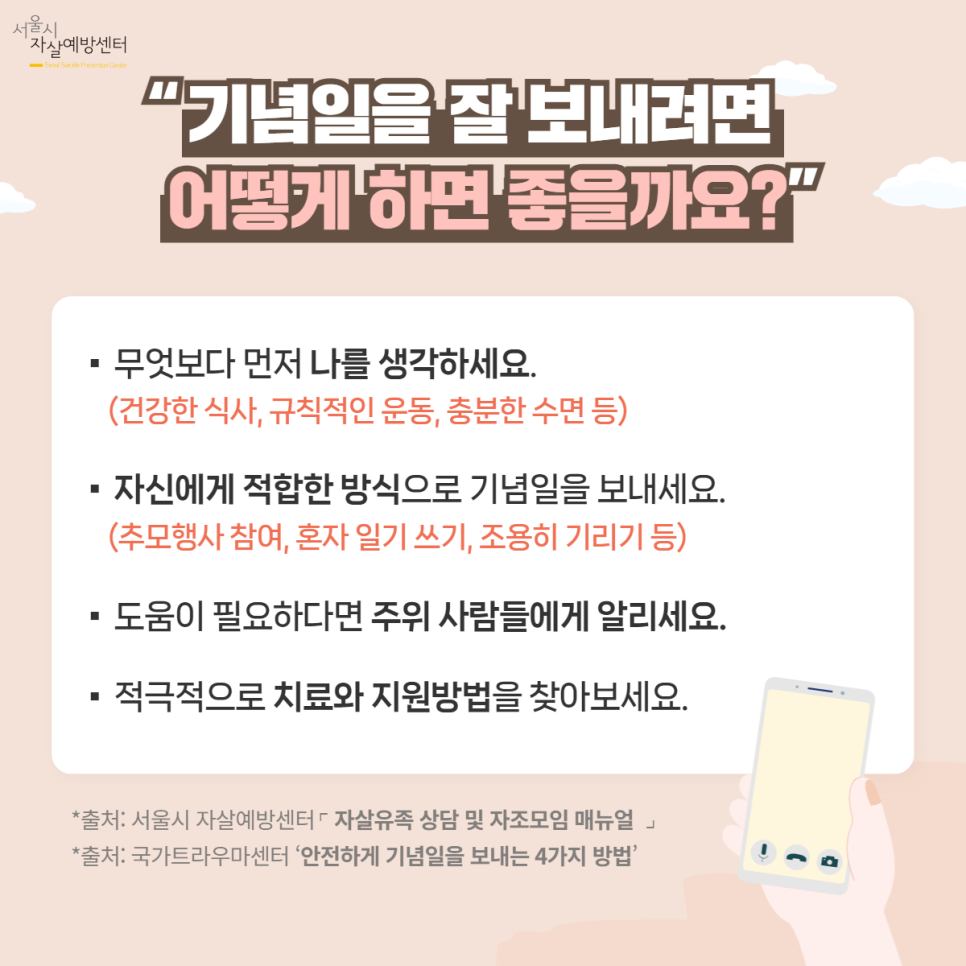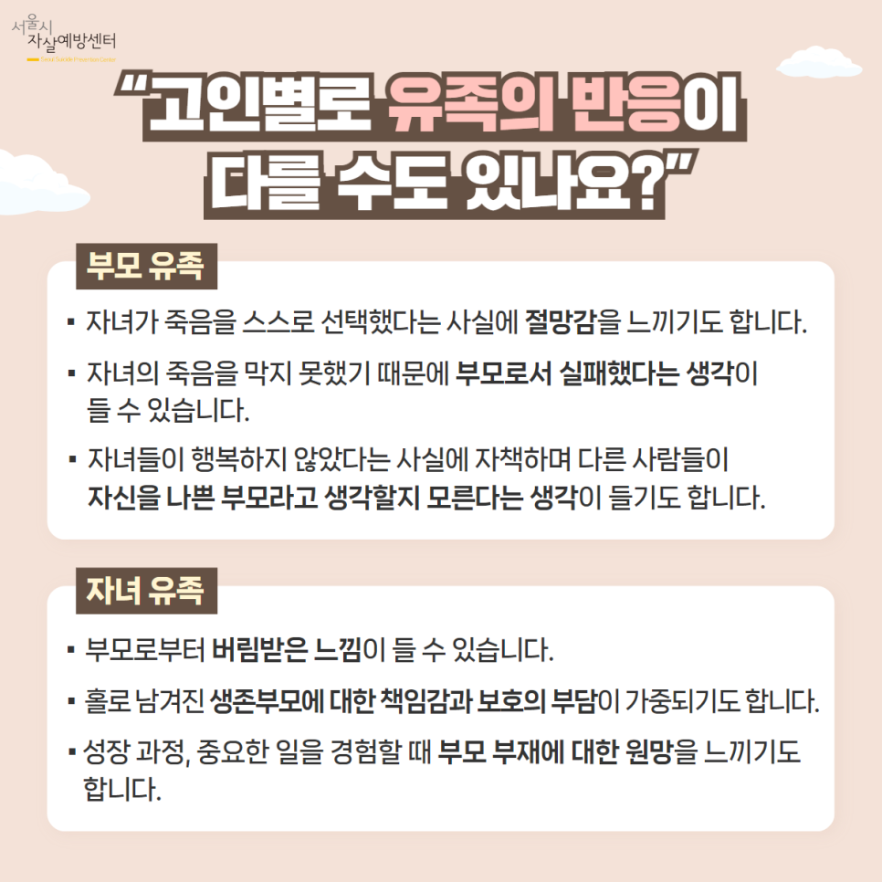 ✔ 문의: 서울시자살예방센터 유족긴급서비스팀(02-3458-1051)