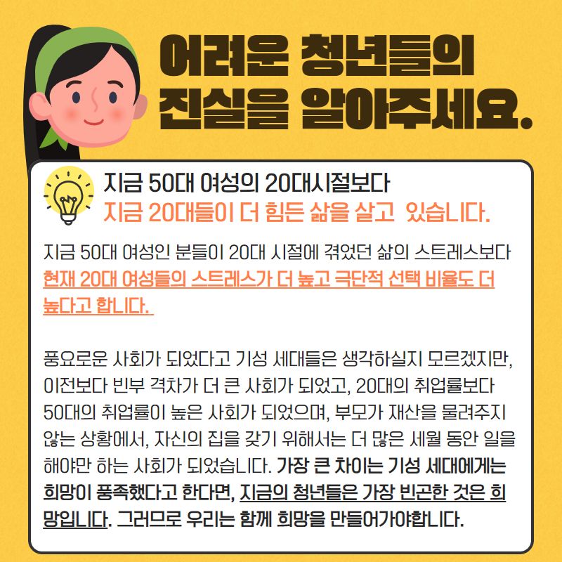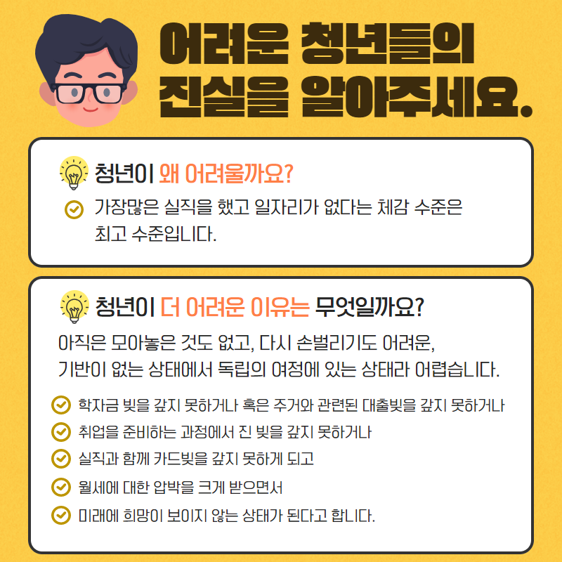어려운 청년들의 진실을 알아주세요!