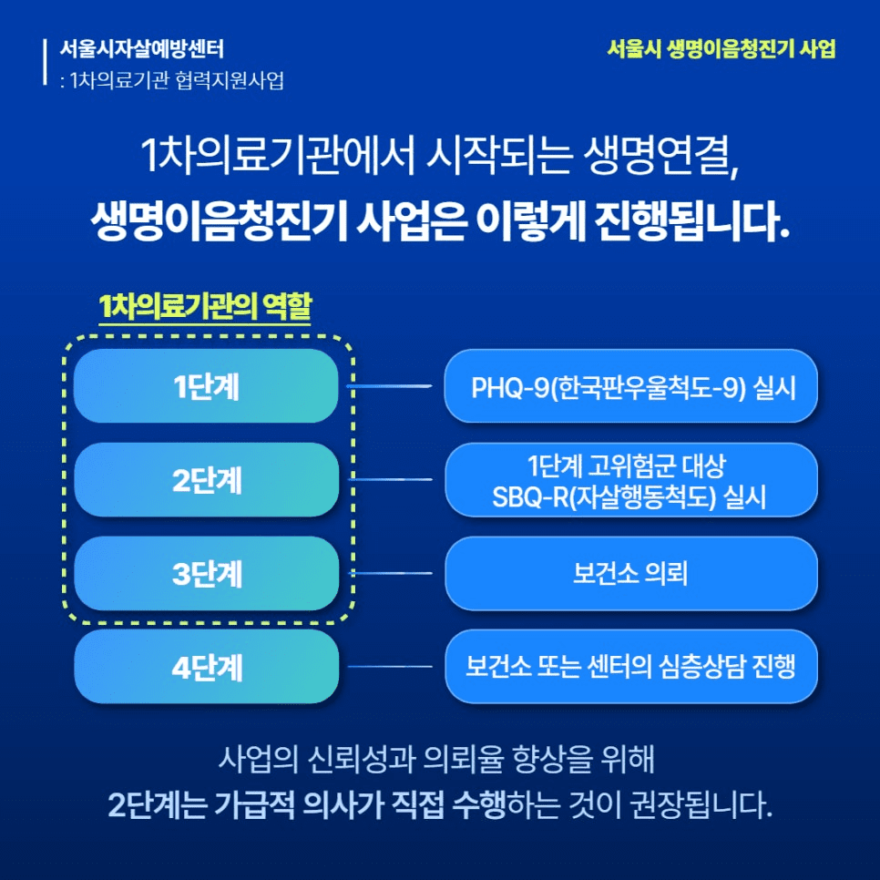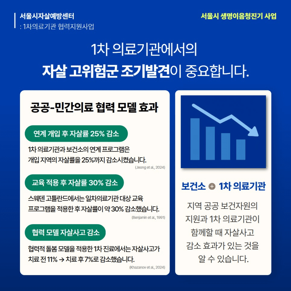 1차 의료기관과 협력하여 자살 고위험군을 조기에 발견하고 연계하는