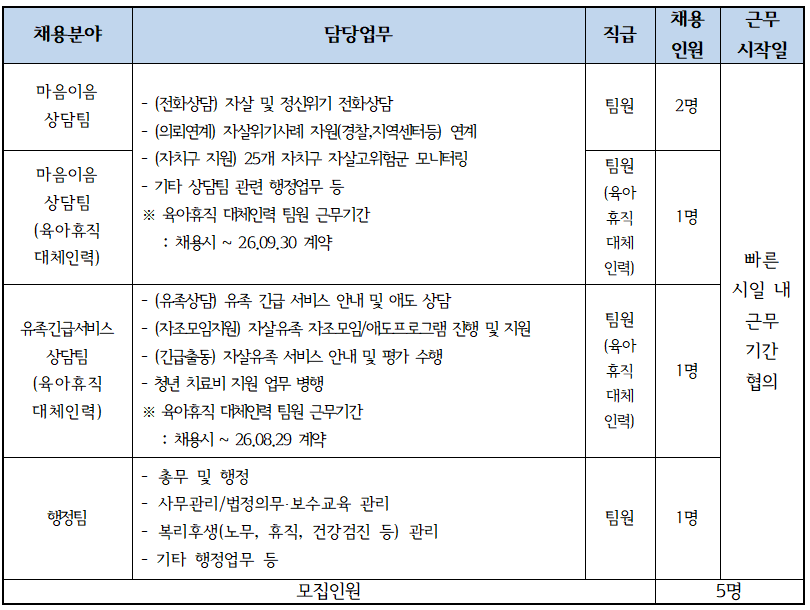 [서울시자살예방센터 인력채용 공고(9차)]