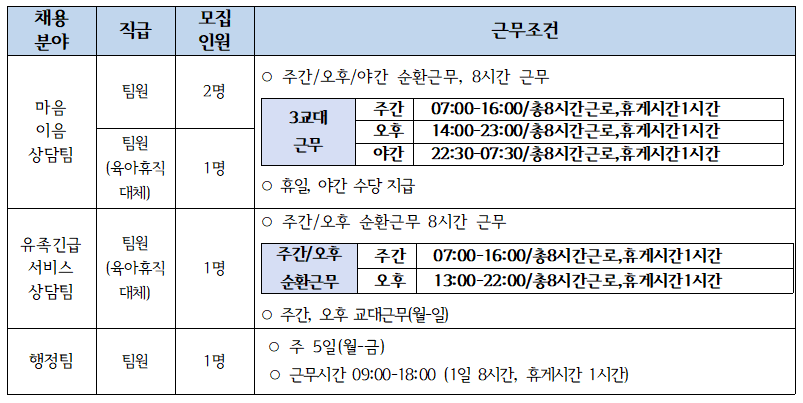 ○ 마음이음상담팀(육아휴직 대체인력 팀원) 지원
