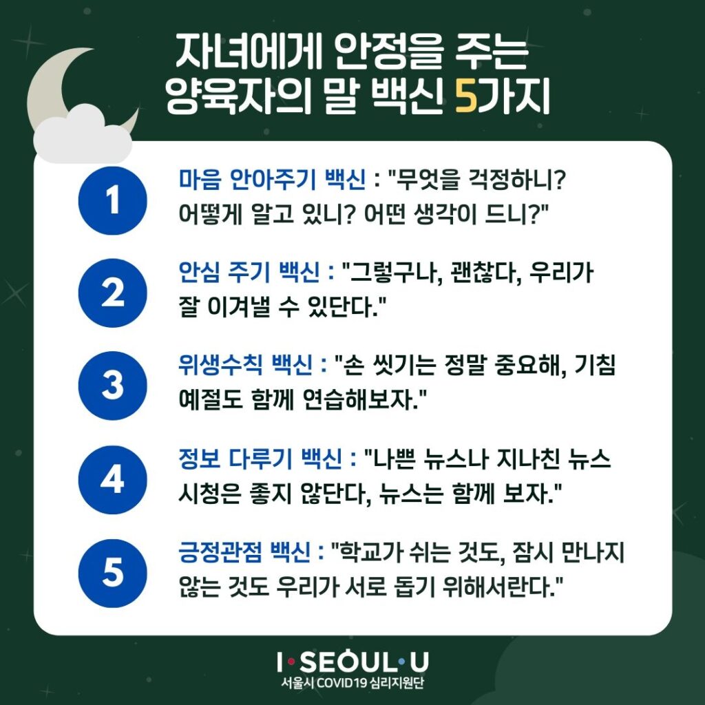 자녀에게 안정을 주는 양육자의 말 백신 5가지
