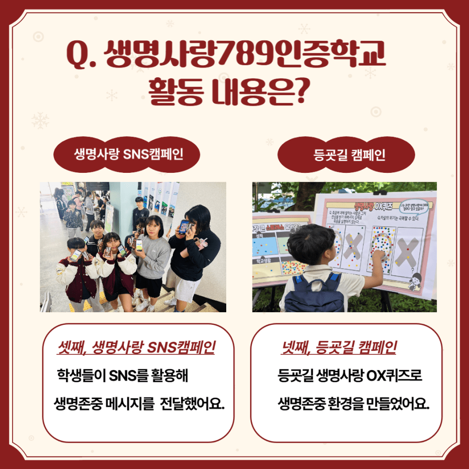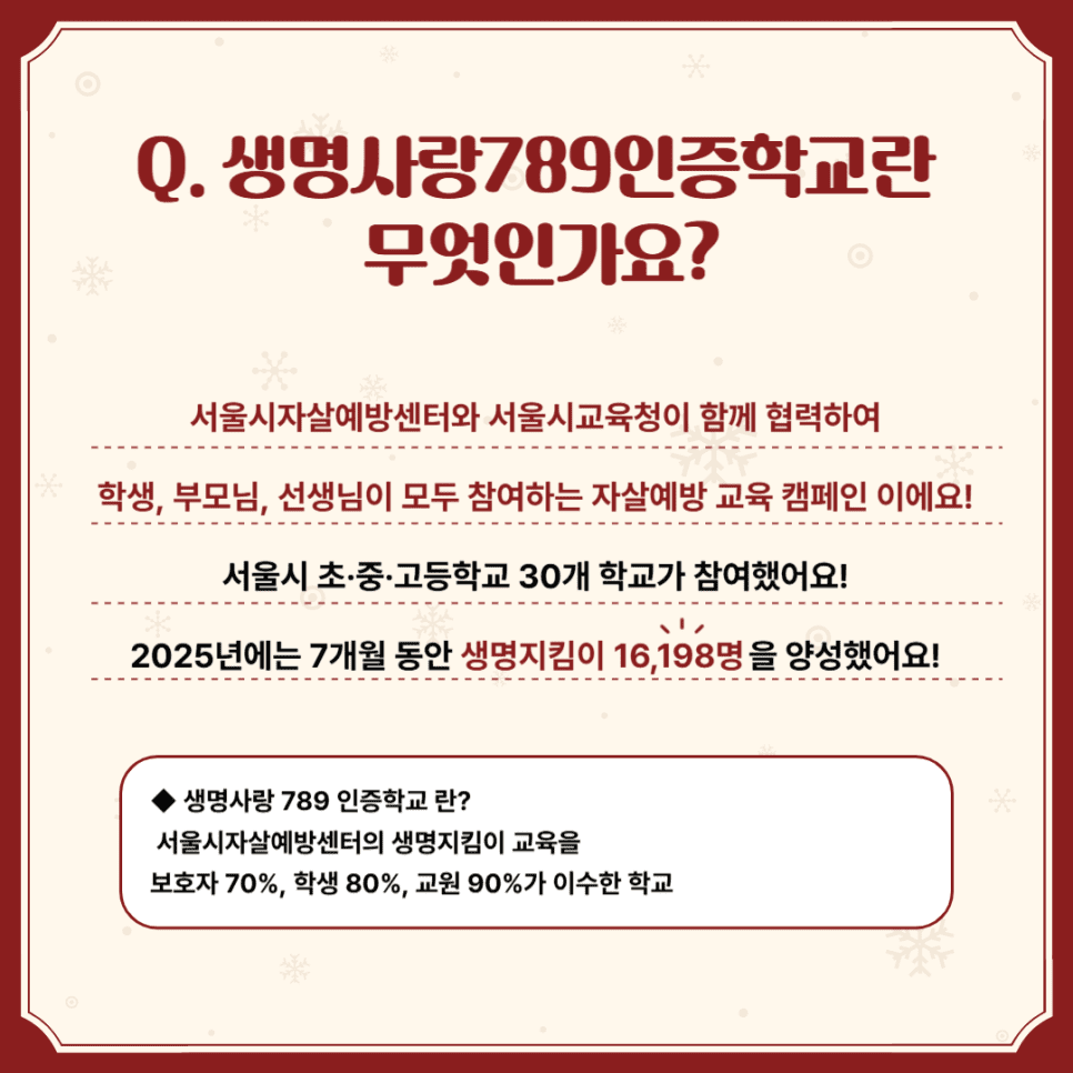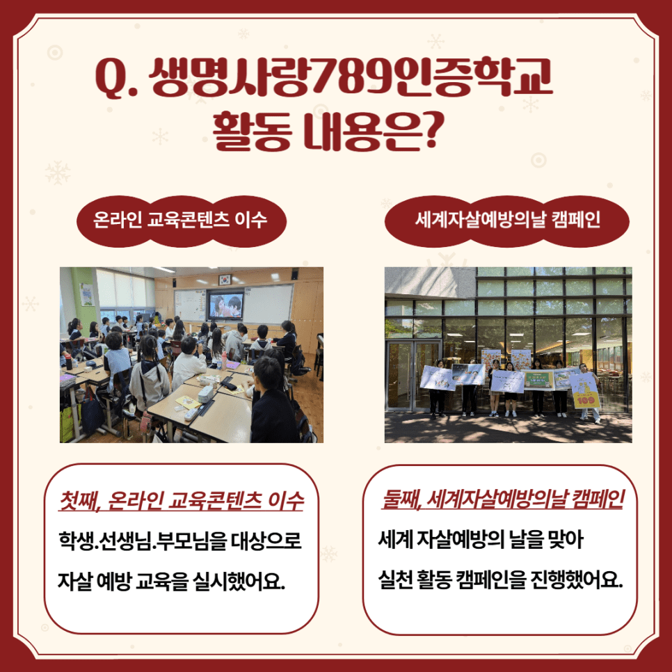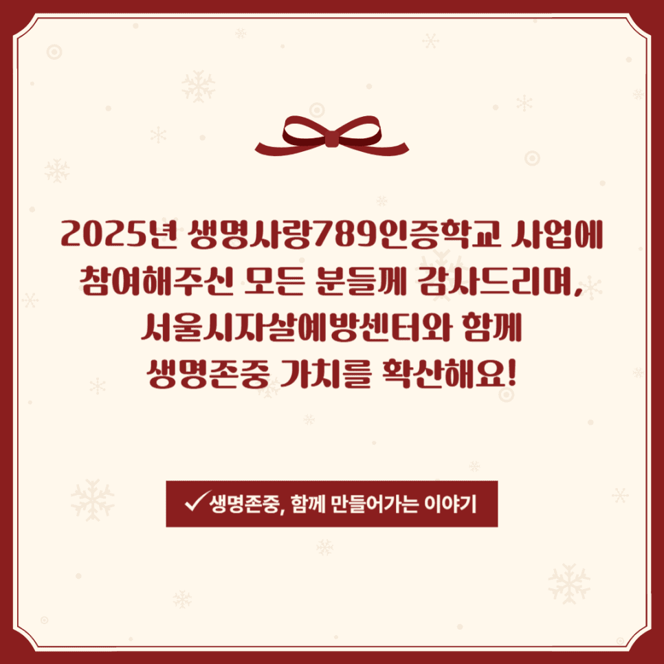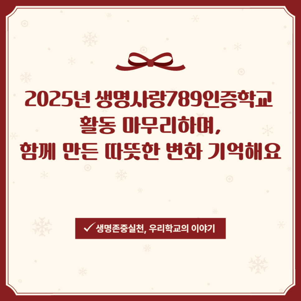 2025년 ‘생명사랑789인증학교’ 청소년 자살예방 캠페인이 성공적으로 마무리되었습니다.