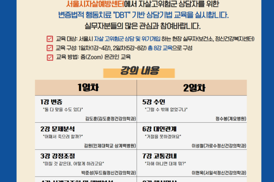 “DBT” 변증법적 행동치료 기반 상담기법 교육