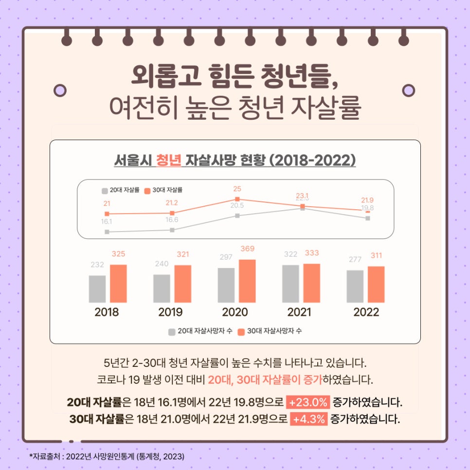 서울시자살예방센터는 청년 자살사망 현황과 마음건강 정보를