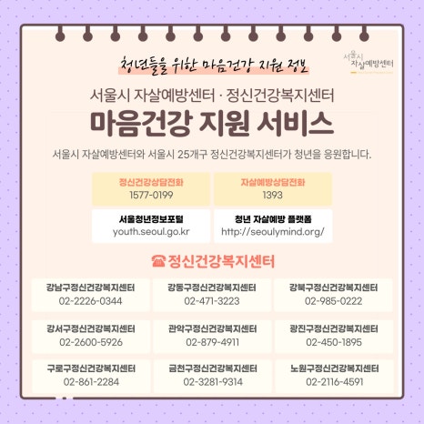 ✔ 문의: 서울시자살예방센터 전략팀(02-3458-1086)