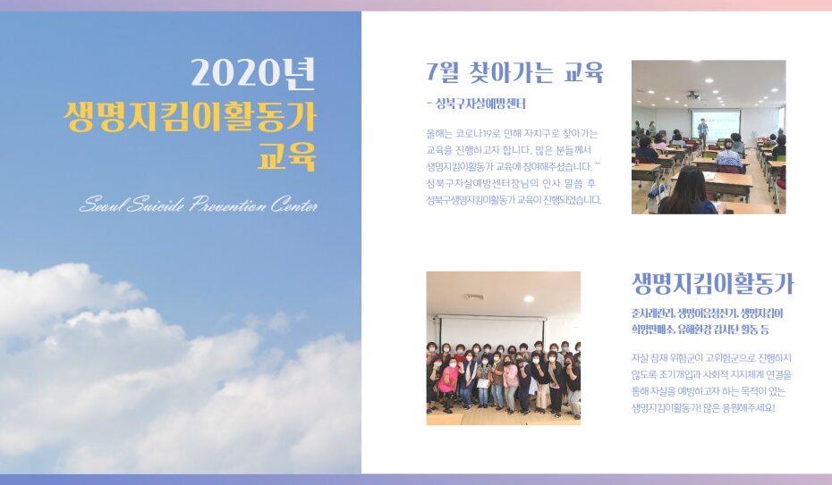 생명지킴이활동가 교육에 참여해주셨습니다. ^^ 성북구자살예방센터장님의 인사 말씀 후 성북구생명지킴이활동가 교육이 진행되었습니다.