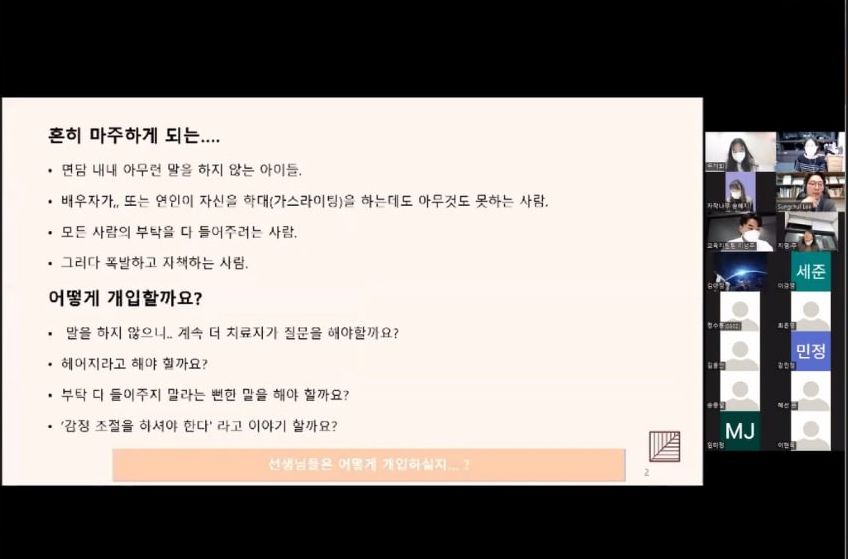 안녕하세요. 서울시자살예방센터 교육지원팀입니다.