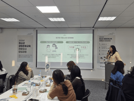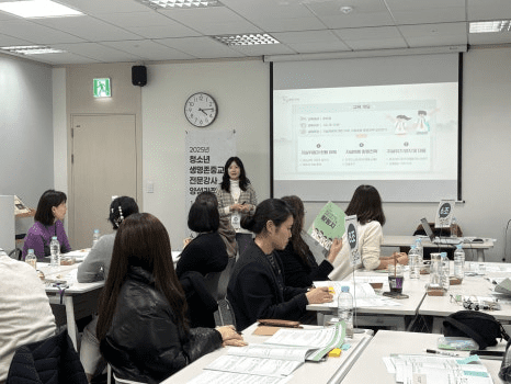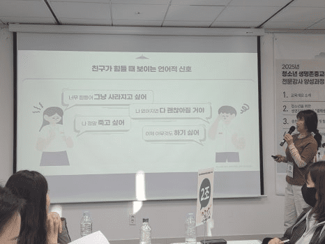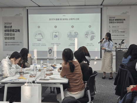 참여자들은 도입-전개-정리 구조에 맞춰 청소년 생명지킴이 교육 강의를 시연하고, 발표를 통해 학생 대상